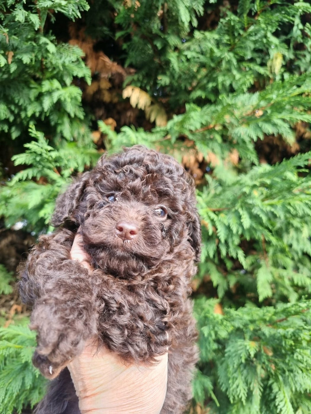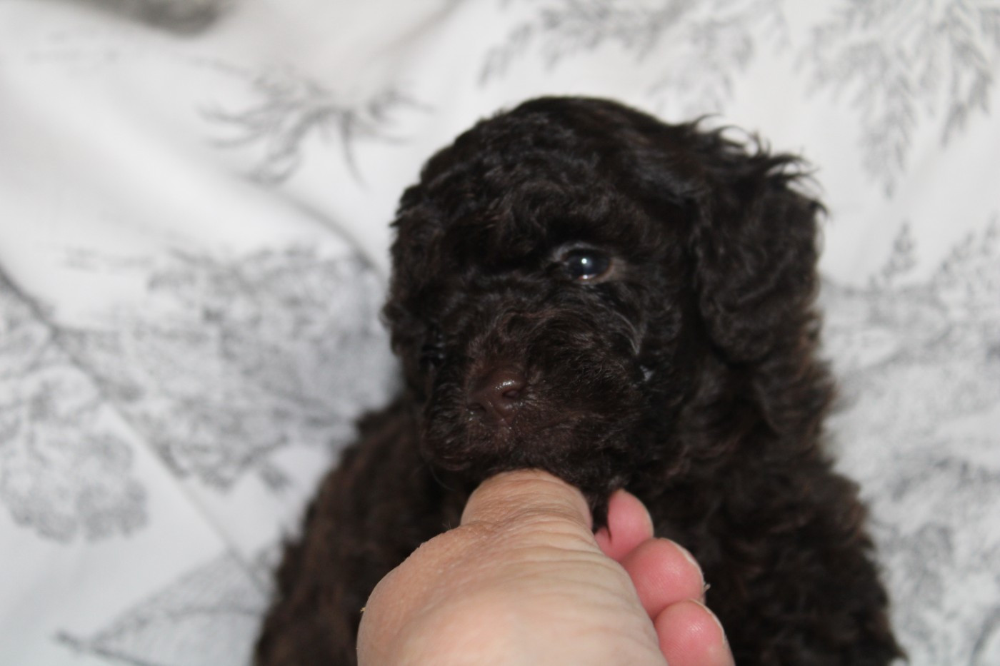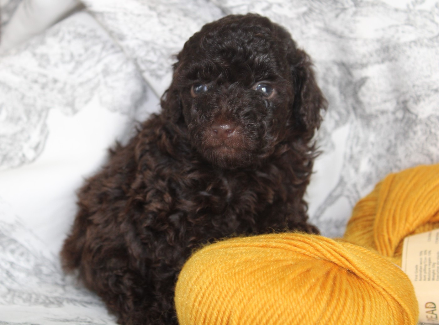 petit chiot mâle marron - sera toy ou tout petit nain (poids à 2 mois 1;125kg)